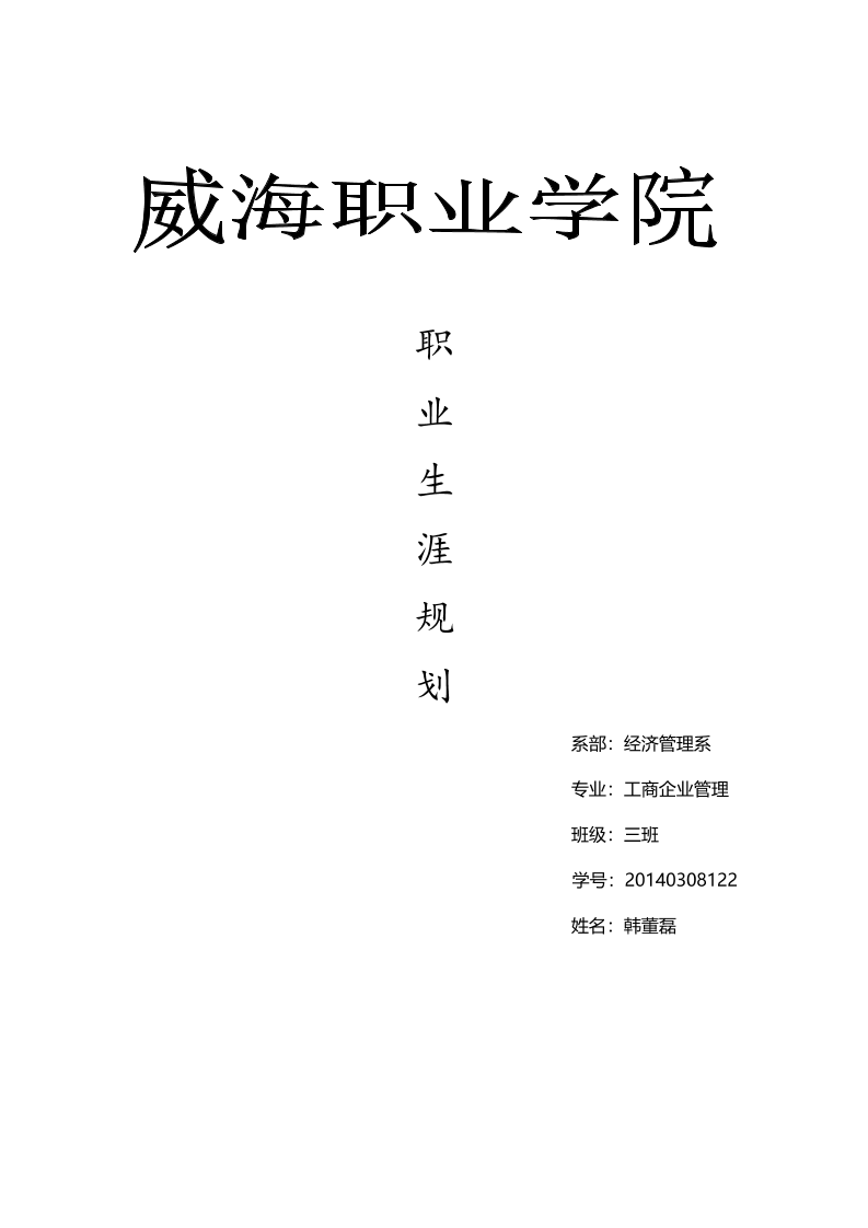 工商企业管理专业职业生涯规划书---大学生职业生涯规划书(最新模板范文)