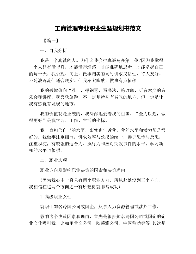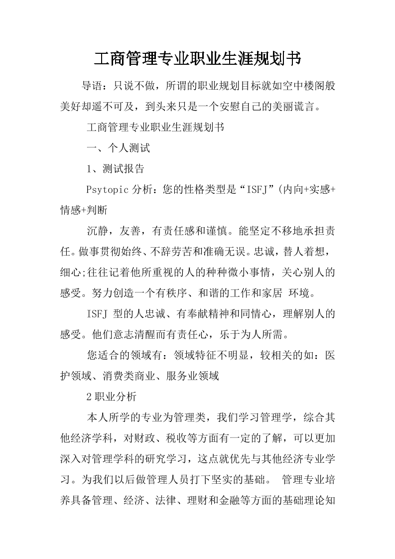 工商管理专业大学生职业生涯规划1