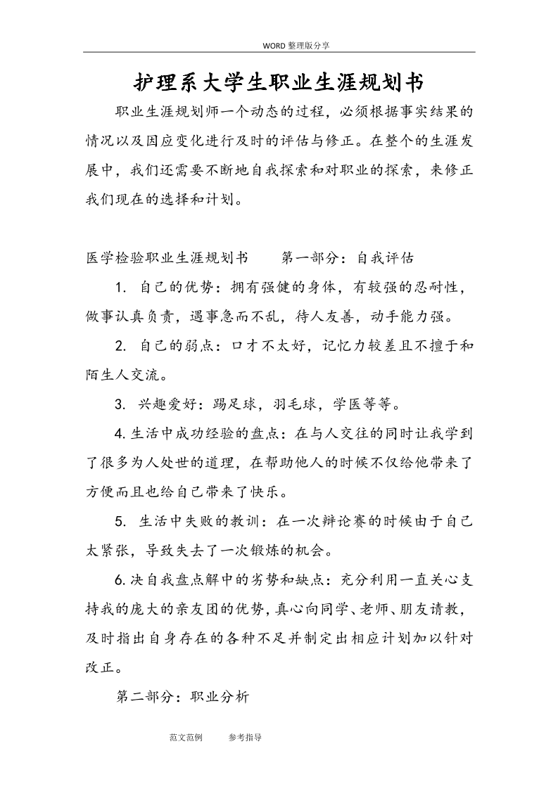 护理系职业生涯规划