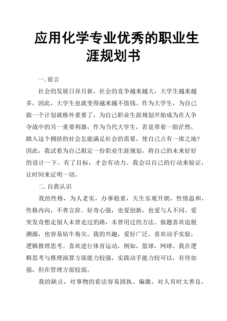应用化学专业职业生涯规划书精品资料