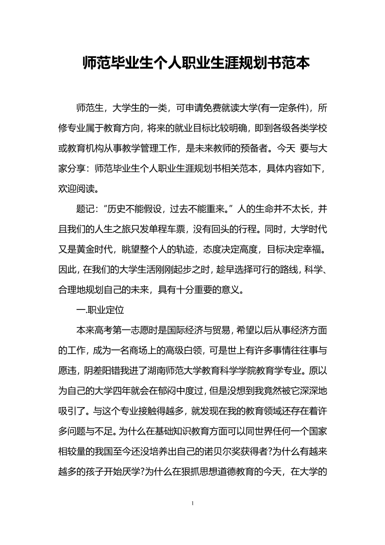 师范类大学生职业生涯规划书_1