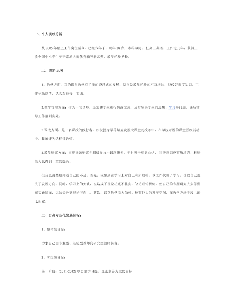 教 师 个 人 五 年 职 业 生 涯 规 划 范 文