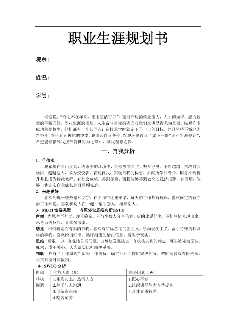 生涯规划书模板