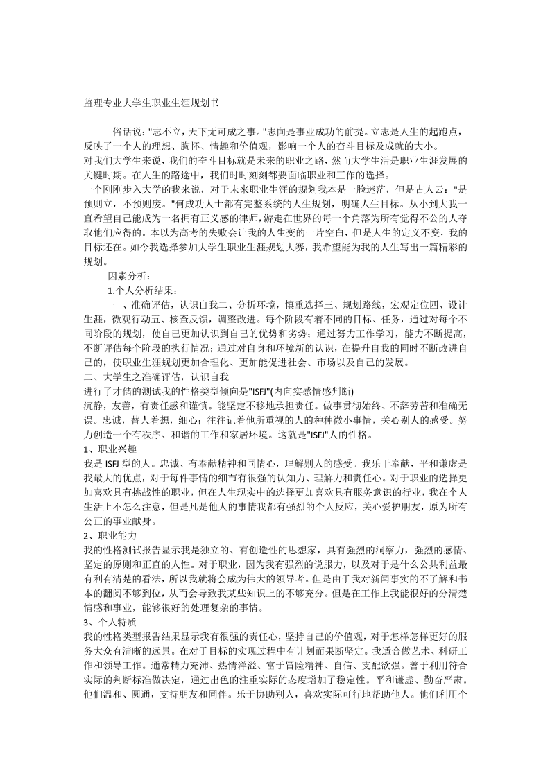 土木系(-监理-)专业职业生涯规划书(结课作业)