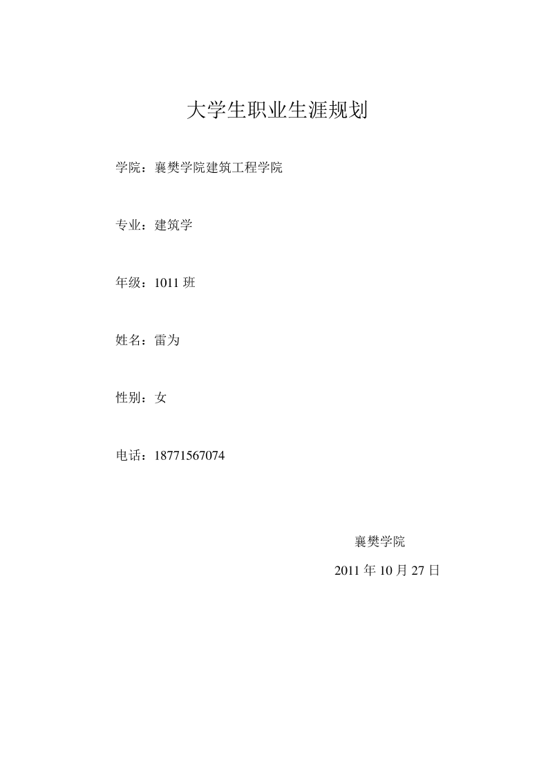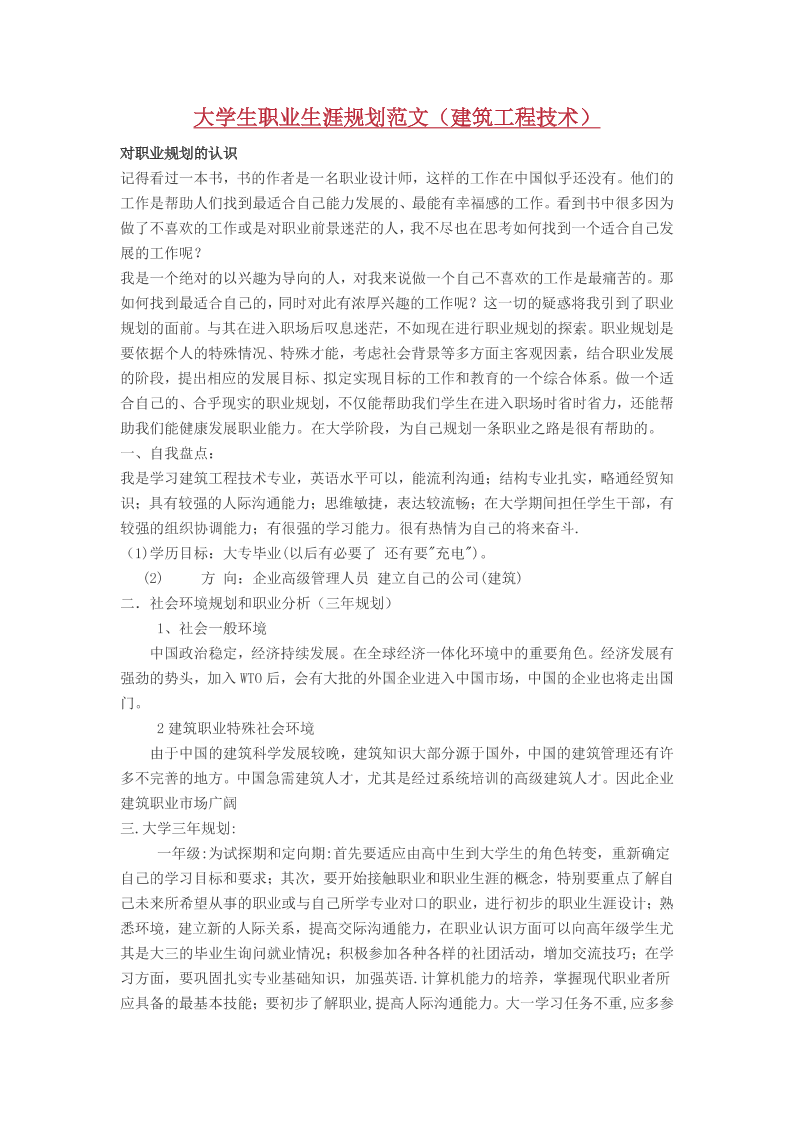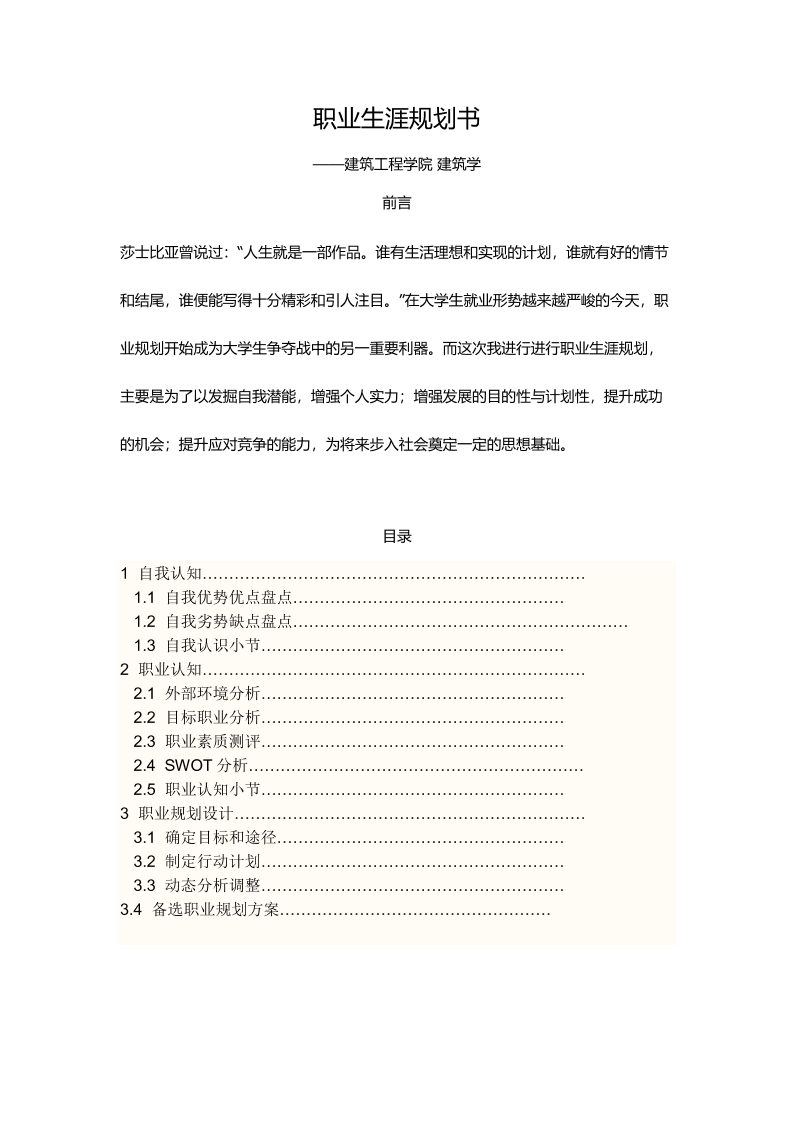 大学生职业生涯规划书范文(工程造价专业、建筑学专业)