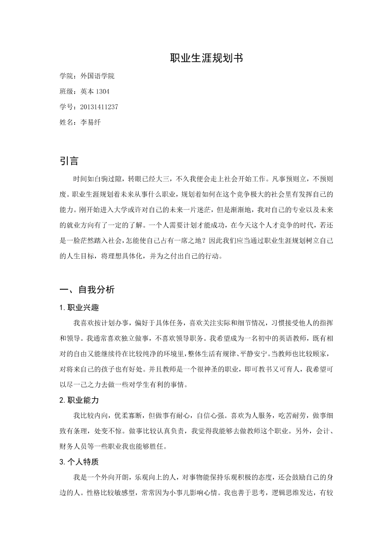 英语专业职业生涯规划书(1)