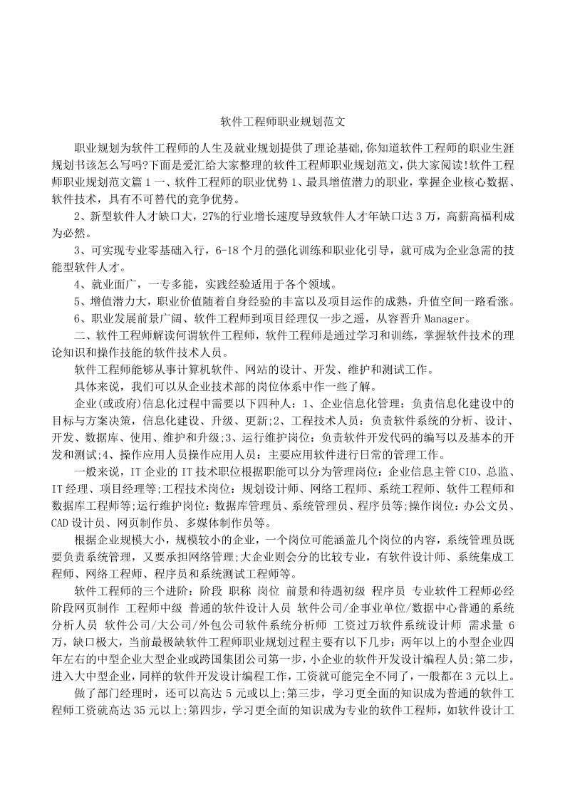软件工程师职业规划范文