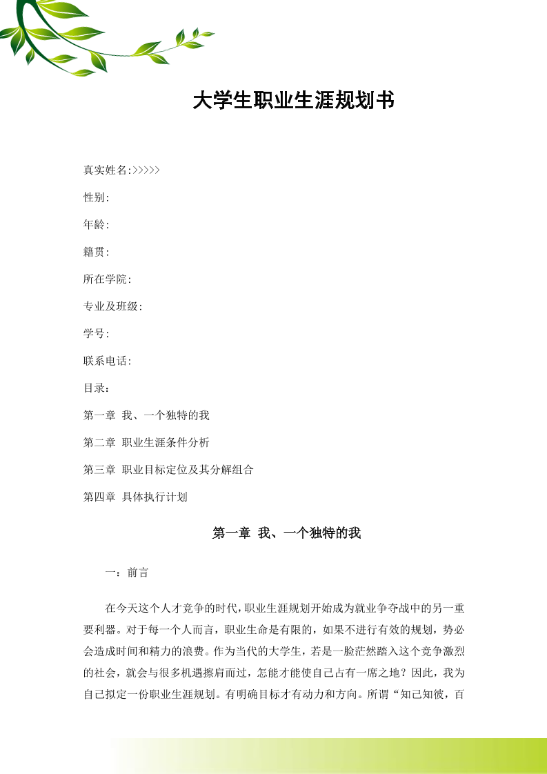 生涯规划书模板