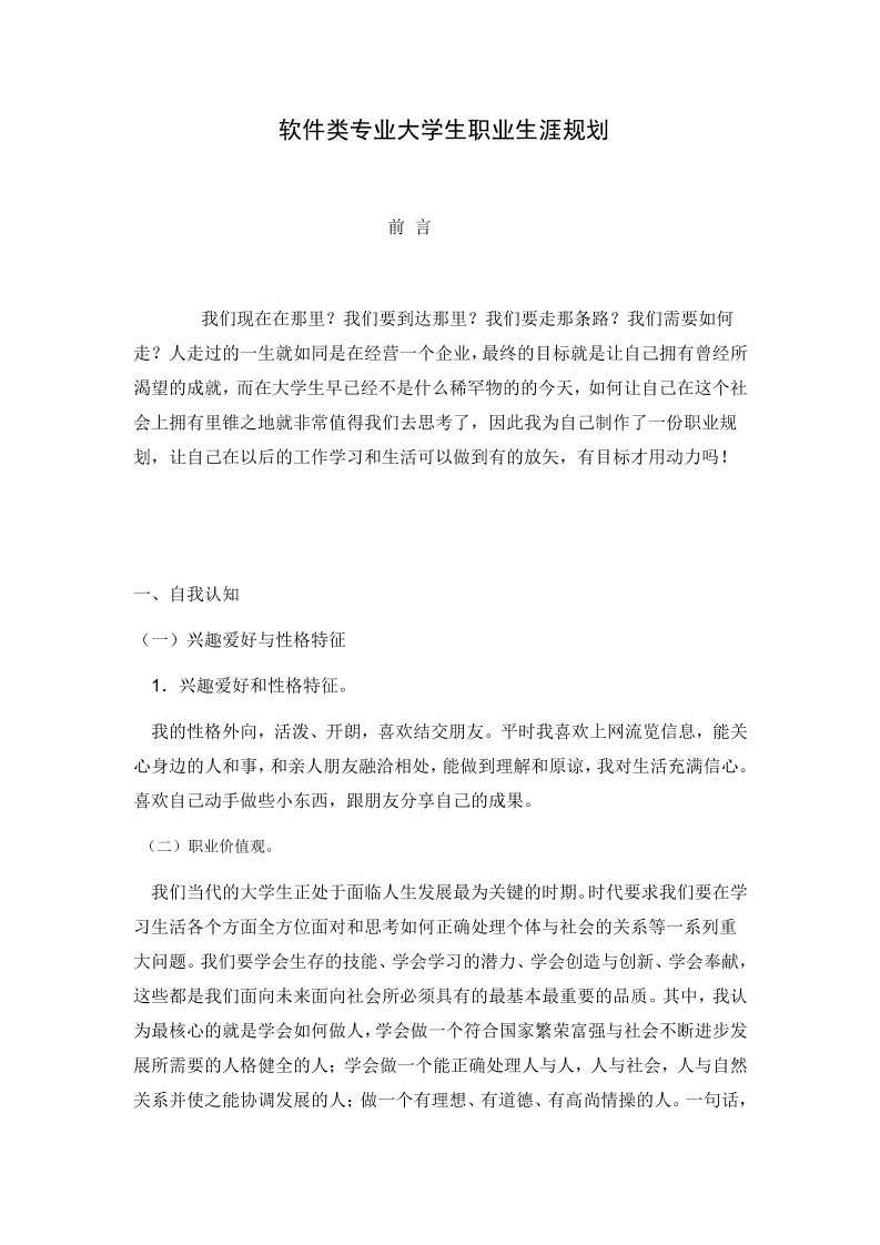 软件类专业大学生职业生涯规划