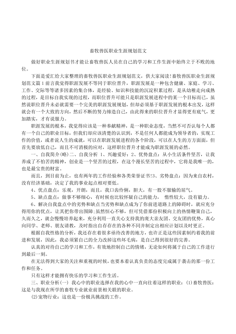 畜牧兽医职业生涯规划范文