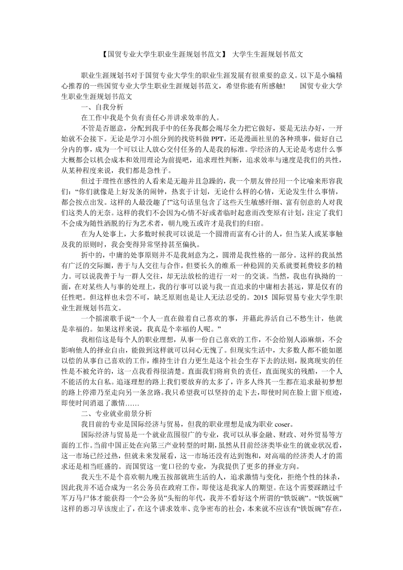 【国贸专业大学生职业生涯规划书范文】-大学生生涯规划书范文