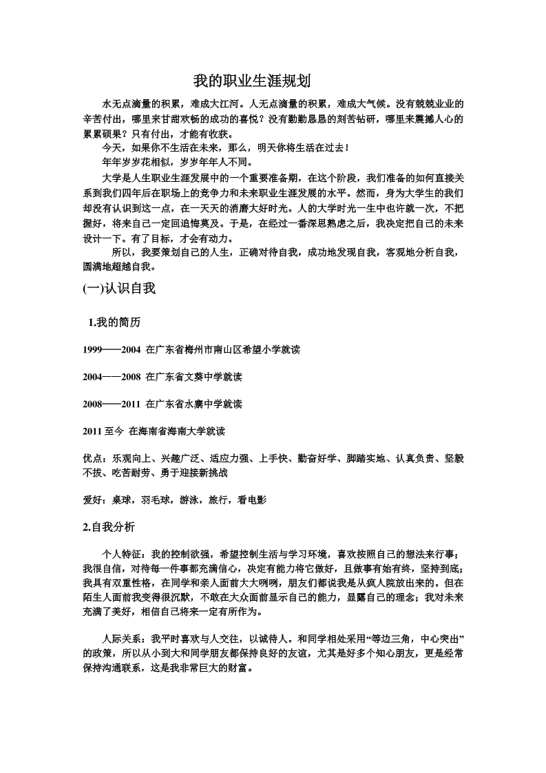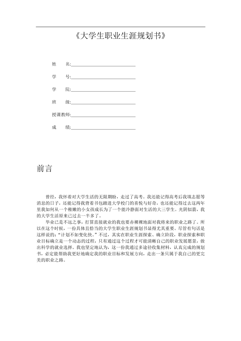 生涯规划书模板