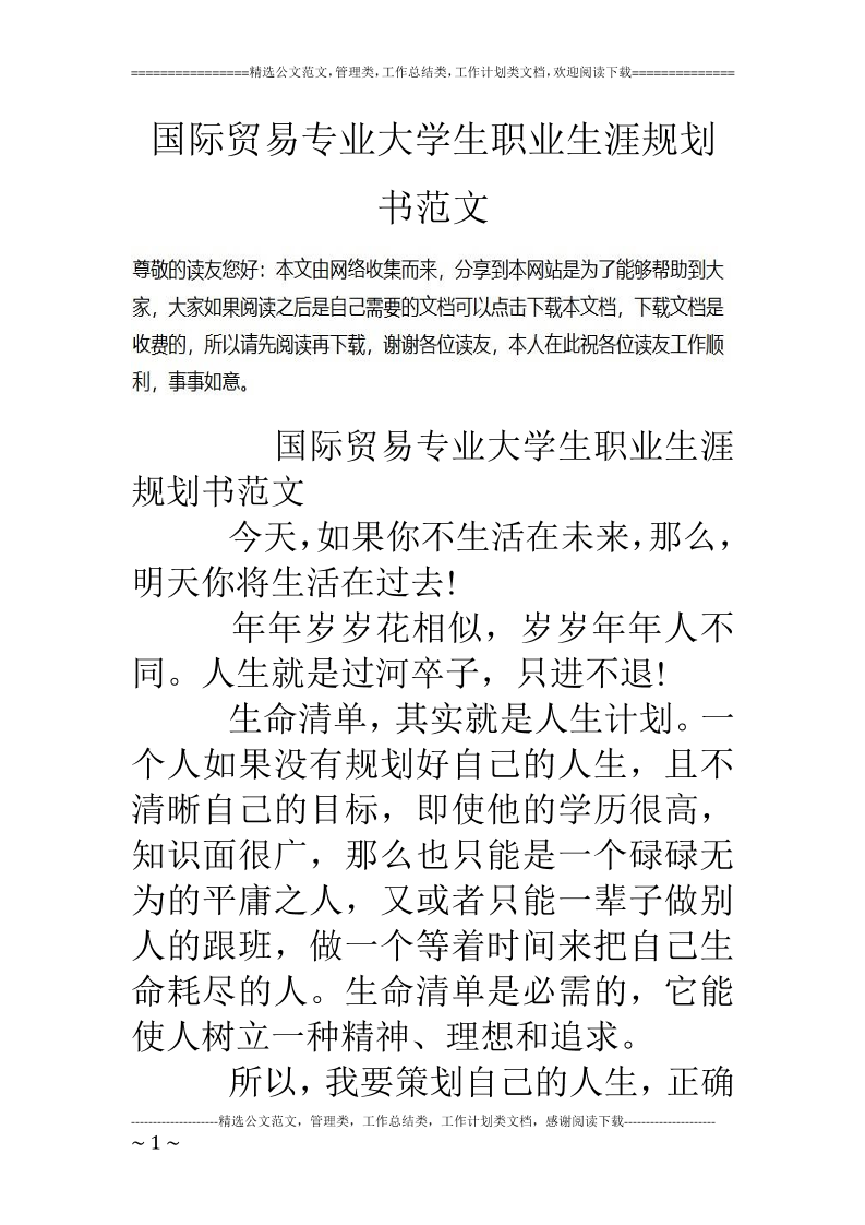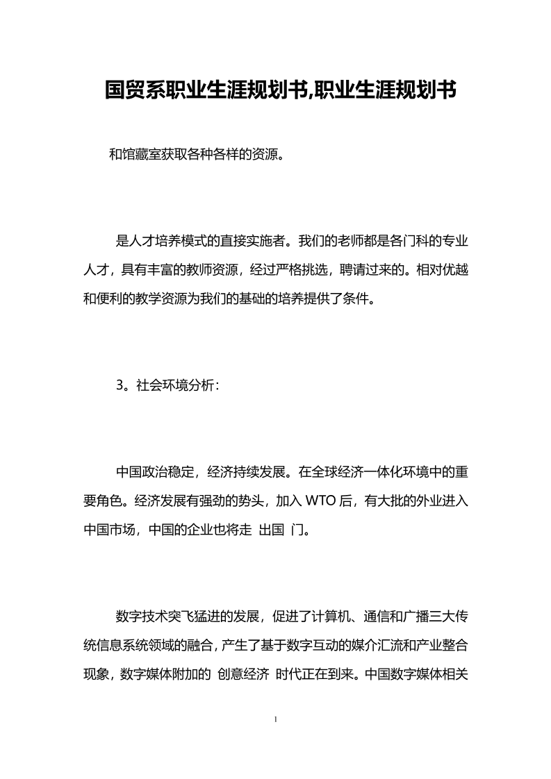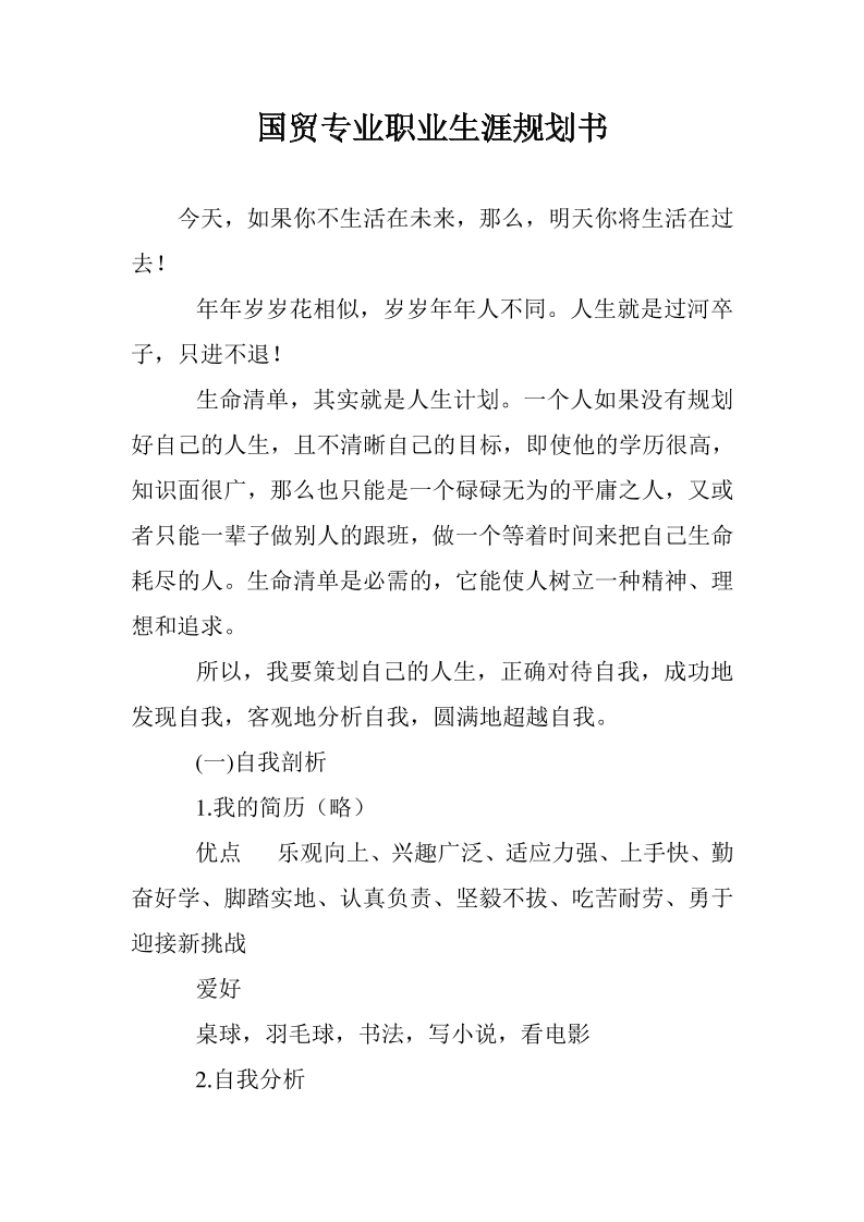 国贸系职业生涯规划书-职业生涯规划书