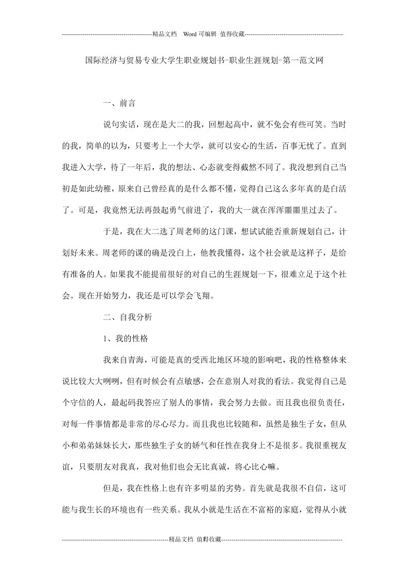 国际经济与贸易专业大学生职业规划书-职业生涯规划