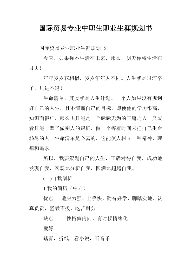 国际贸易专业中职生职业生涯规划书