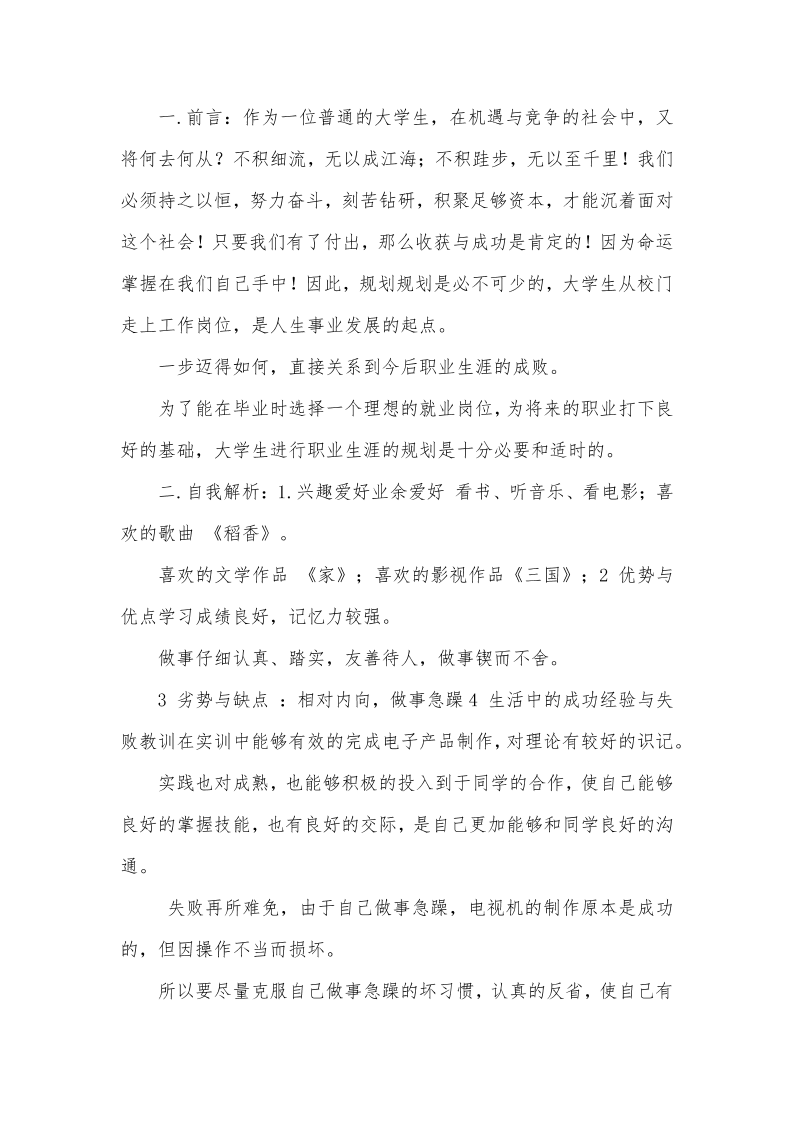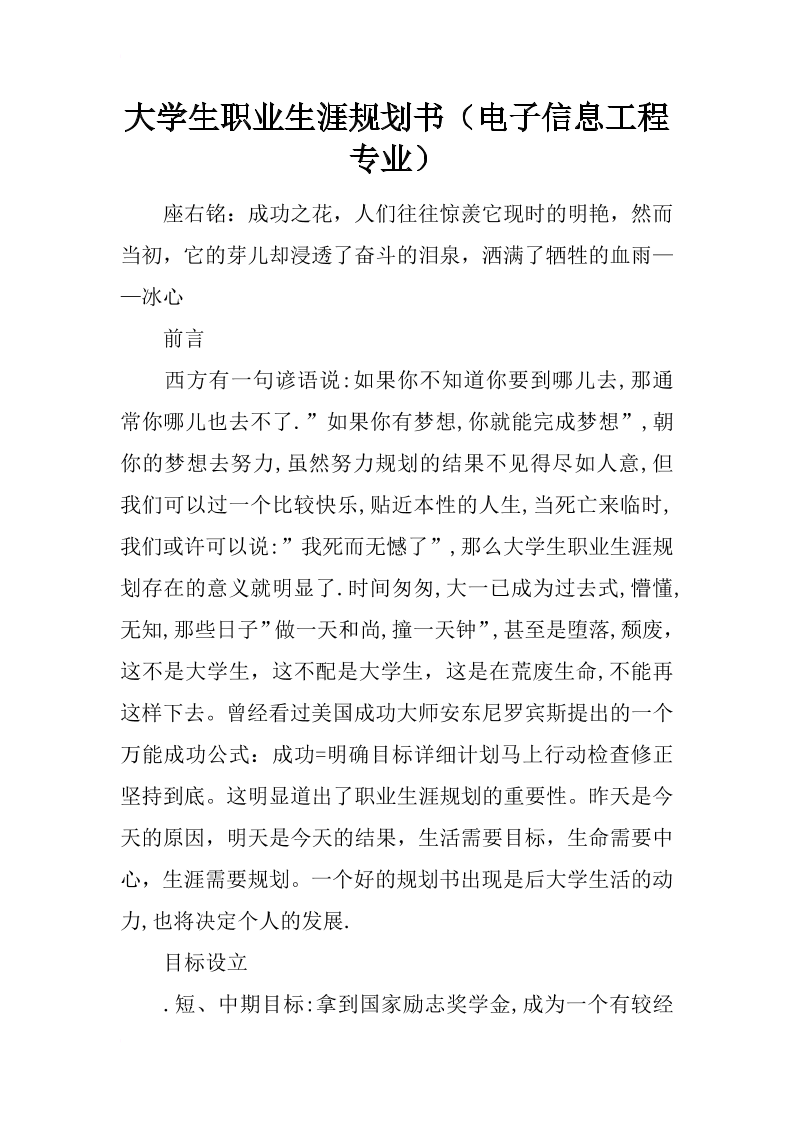大学生职业生涯规划书范文电子信息专业