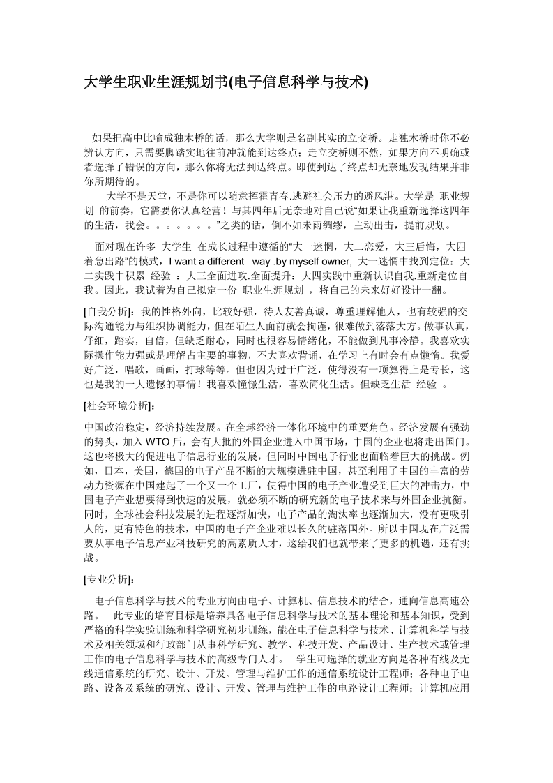大学生职业生涯规划书(电子信息科学与技术)