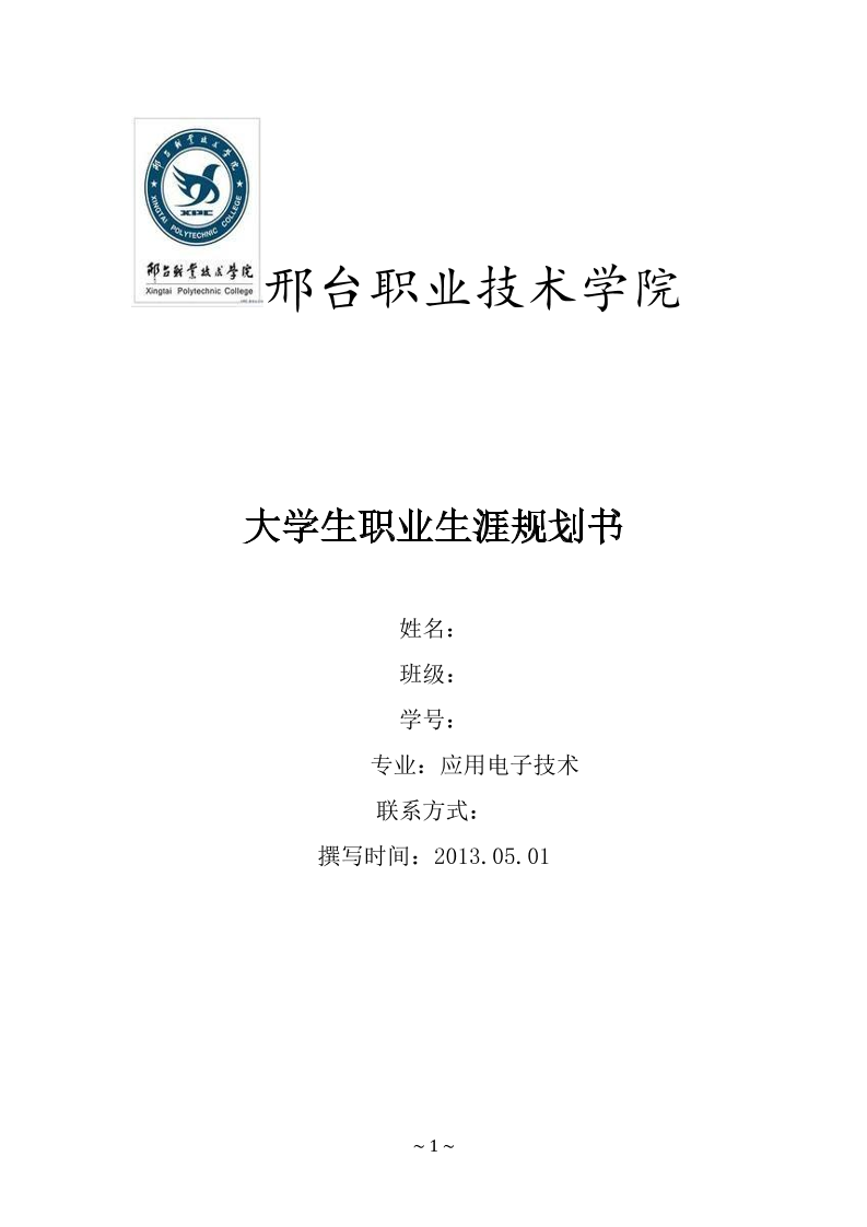 大学生职业生涯规划书应用电子技术(邢台职业技术学院)