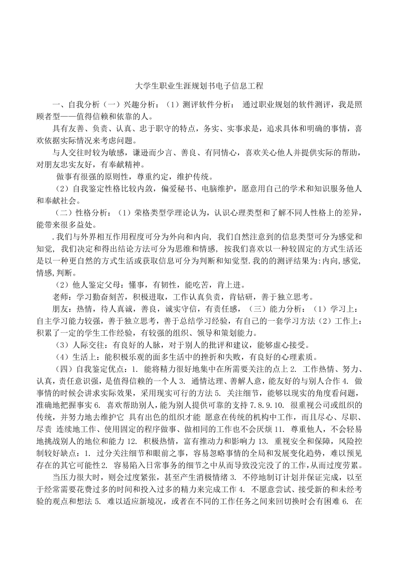 大学生职业生涯规划书范文电子信息工程技术专业1