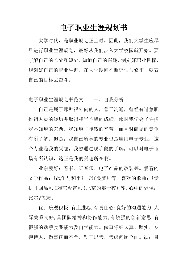 职业生涯规划书-信息科学技术学院-电子信息工程2班-2011162004-晁金龙
