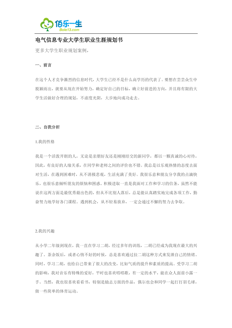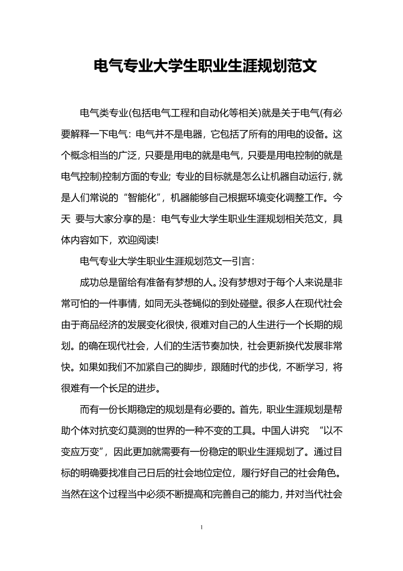 电气专业大学生职业生涯规划范文