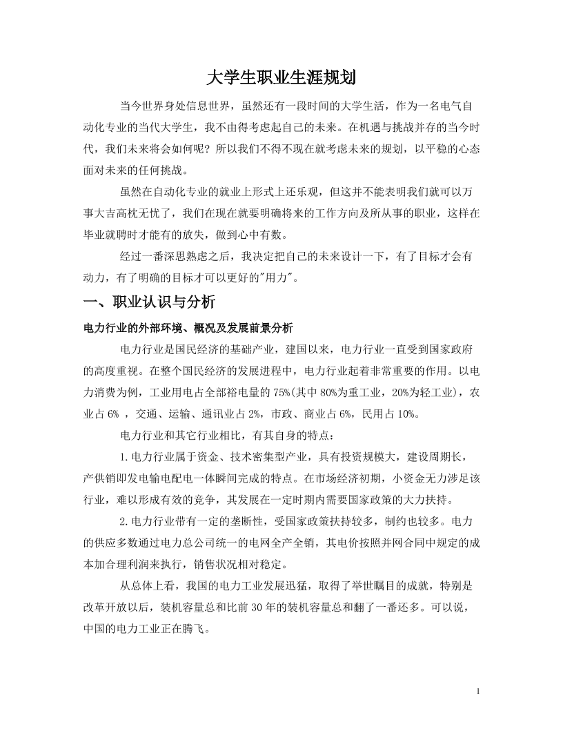 电气工程及其自动化职业生涯规划 (1)
