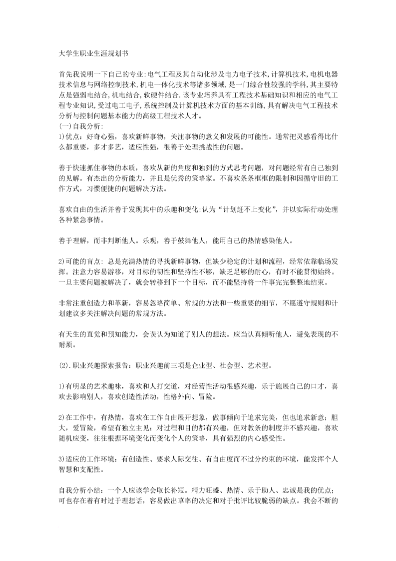 电气工程及其自动化职业生涯规划书