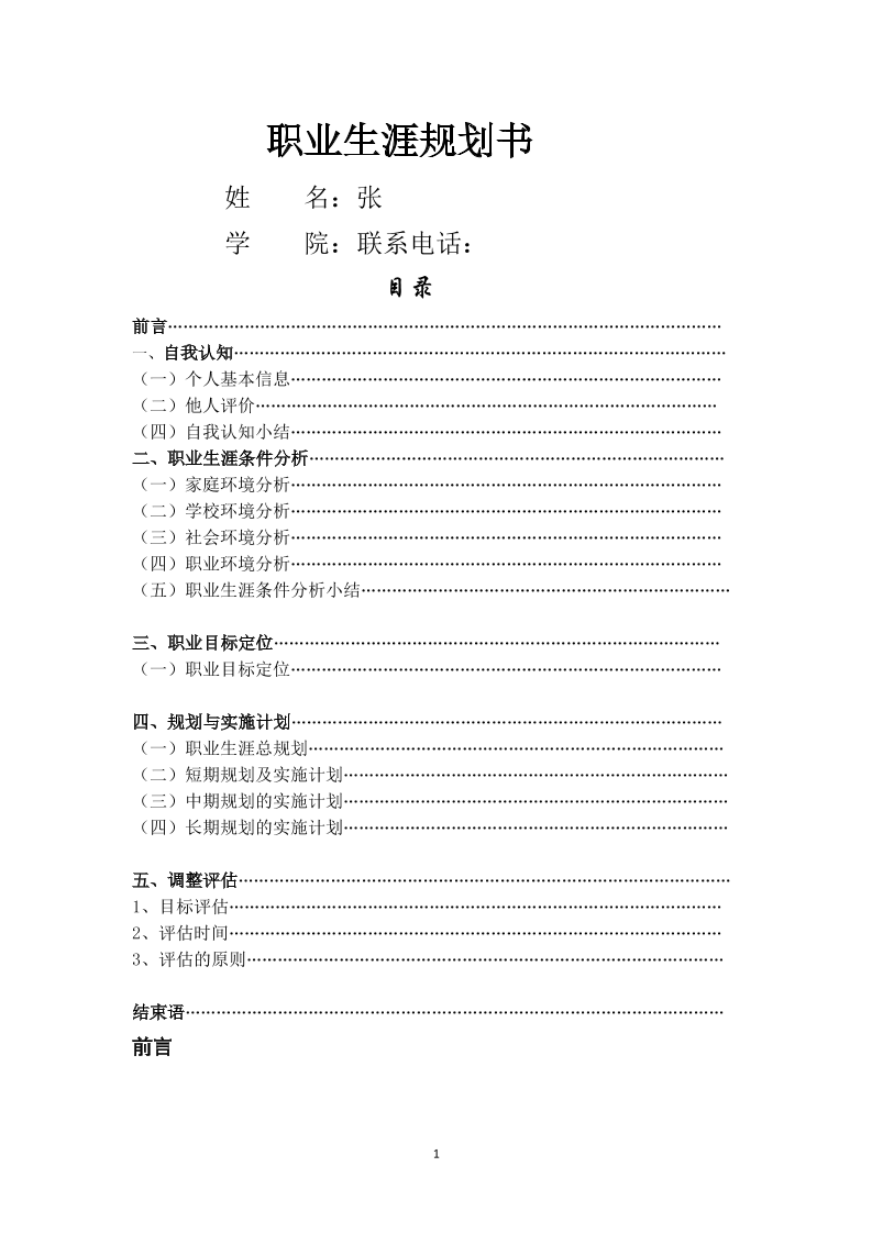 生涯规划书模板