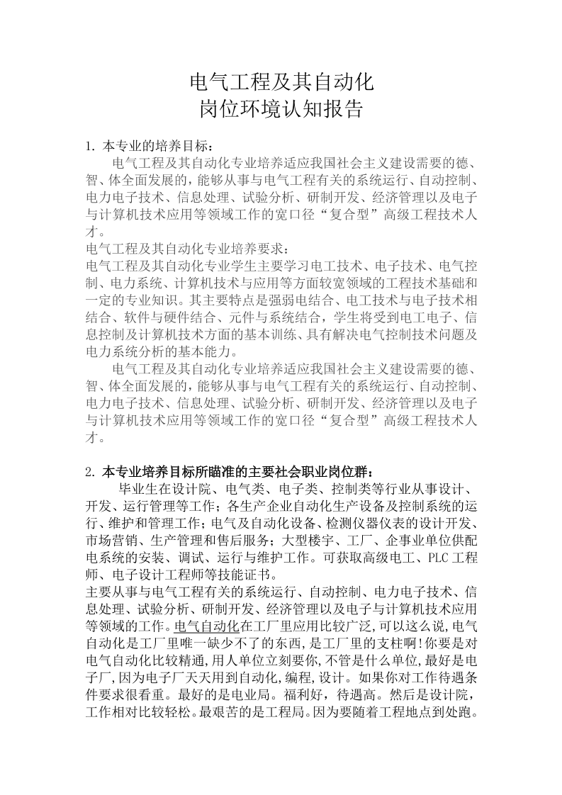 大学生职业生涯规划--电气自动化专业
