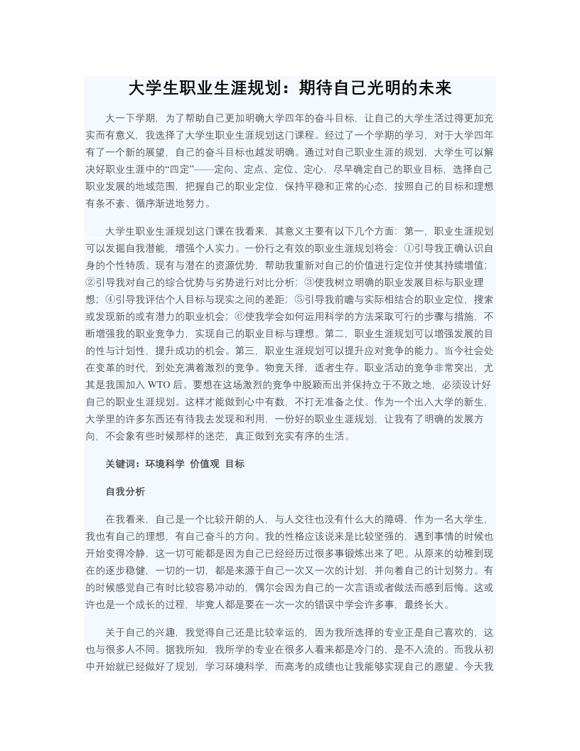 大学生职业生涯规划:期待自己光明的未来
