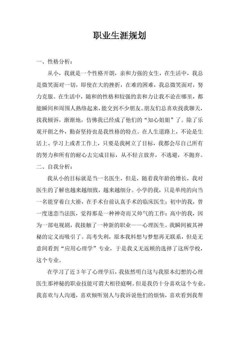 心理学毕业生的职业规划书