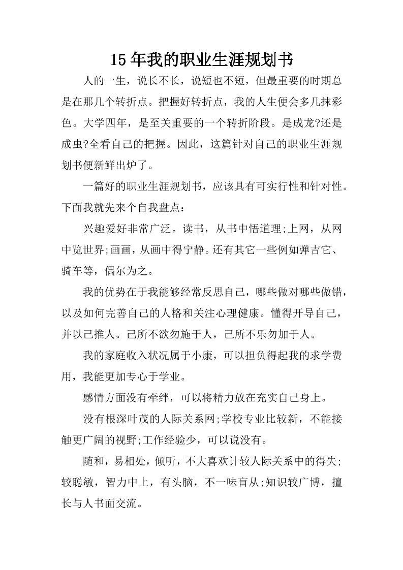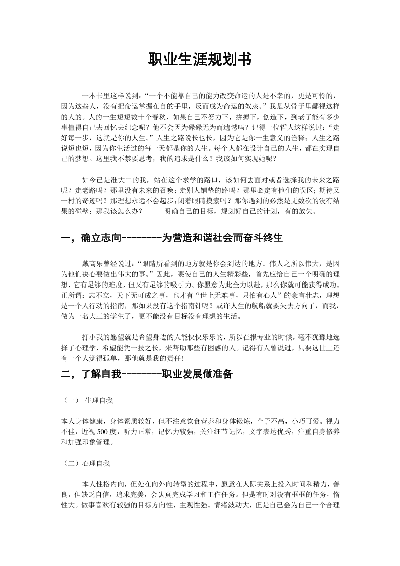 我的职业生涯规划书