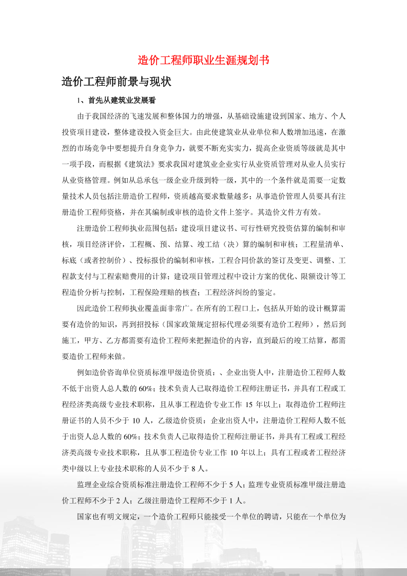 造价工程师职业生涯规划书