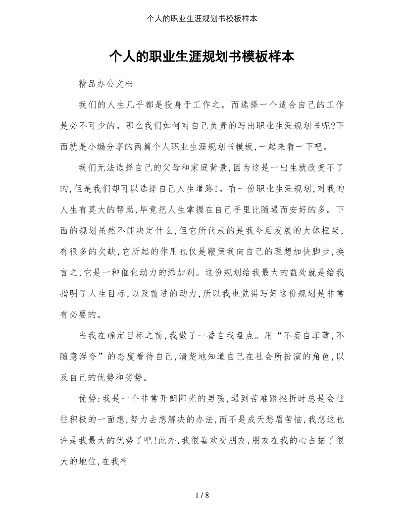 个人的职业生涯规划书模板样本