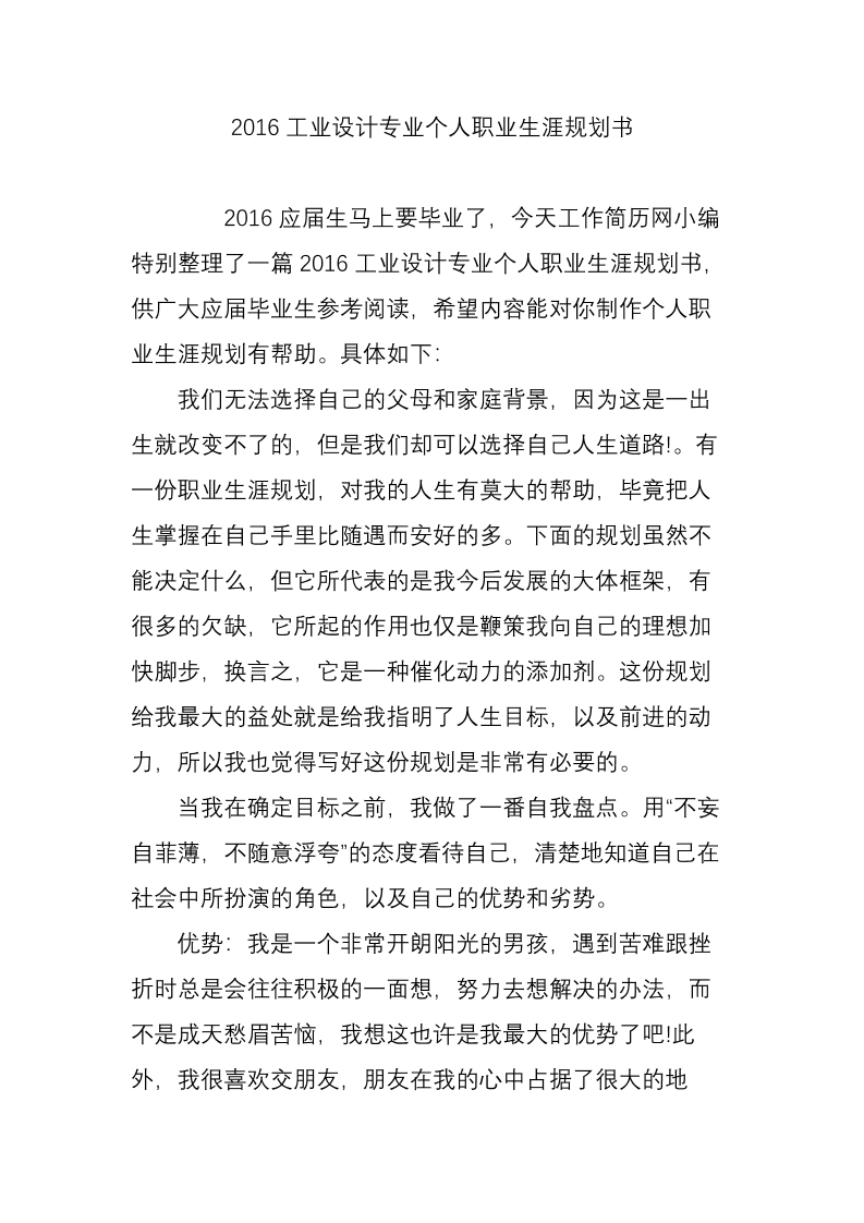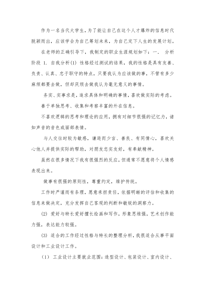 工业设计专业职业生涯规划书 (1)