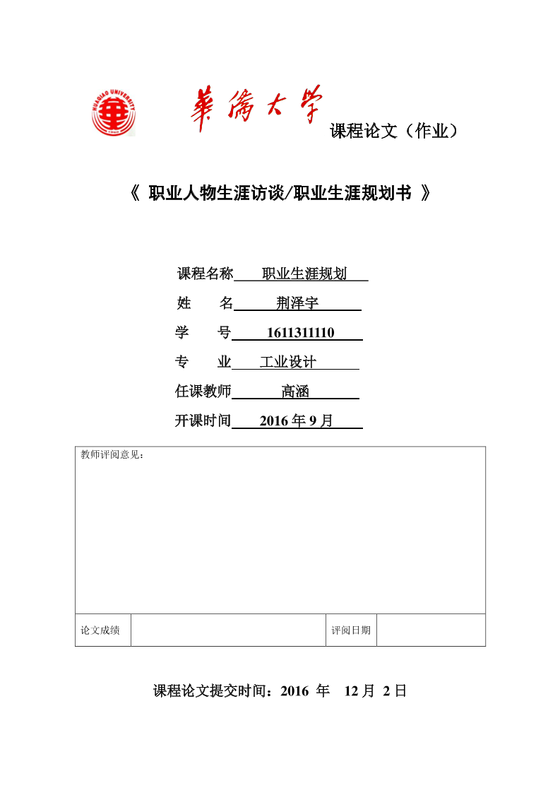工业设计职业生涯规划作业