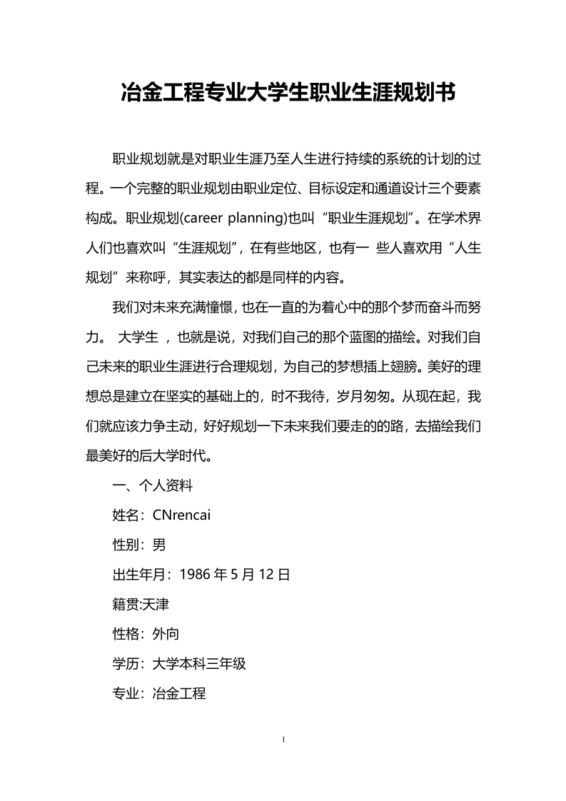 冶金工程专业大学生职业生涯规划书