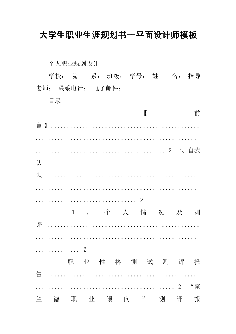 大学生职业生涯规划书--平面设计师模板