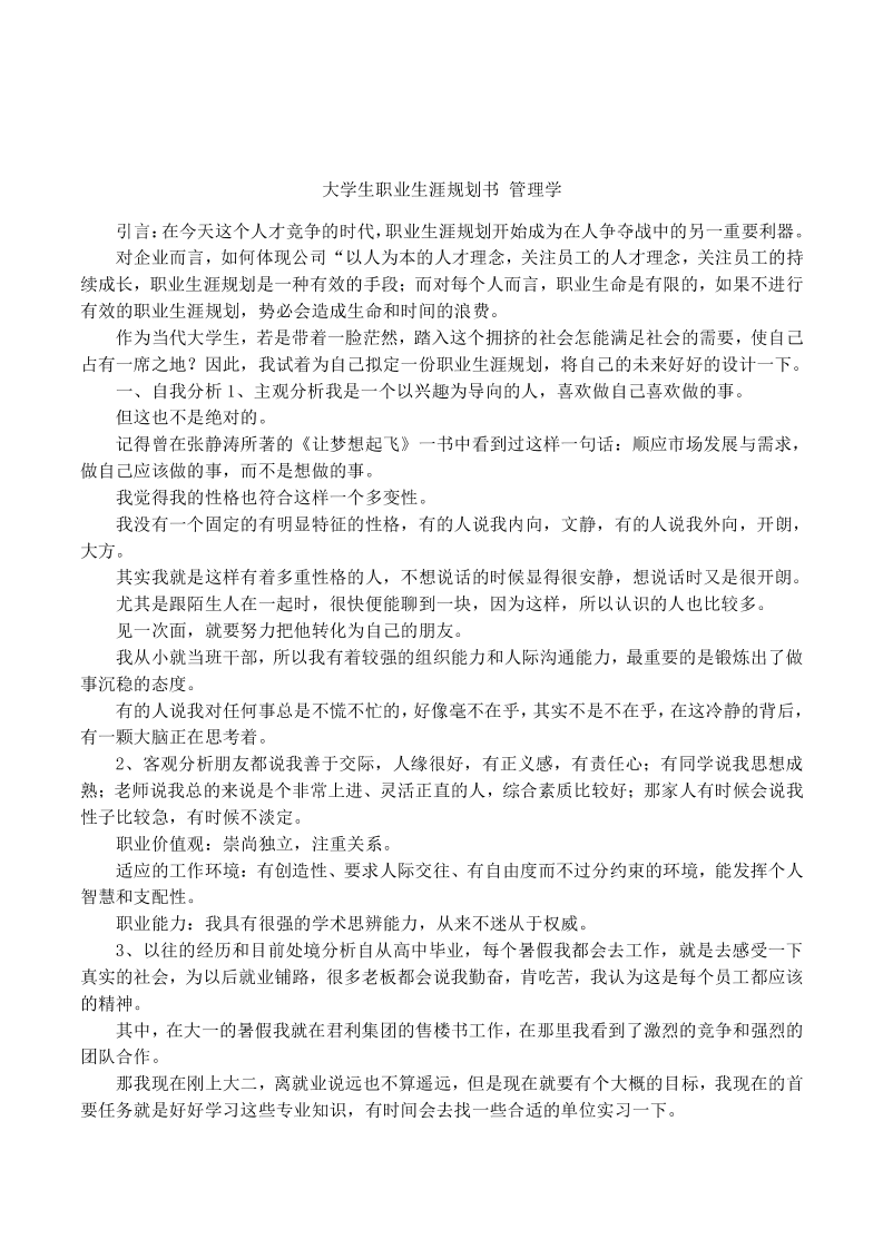 大学生职业生涯规划书-管理学