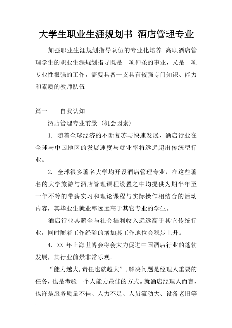 大学生职业生涯规划书-酒店管理专业
