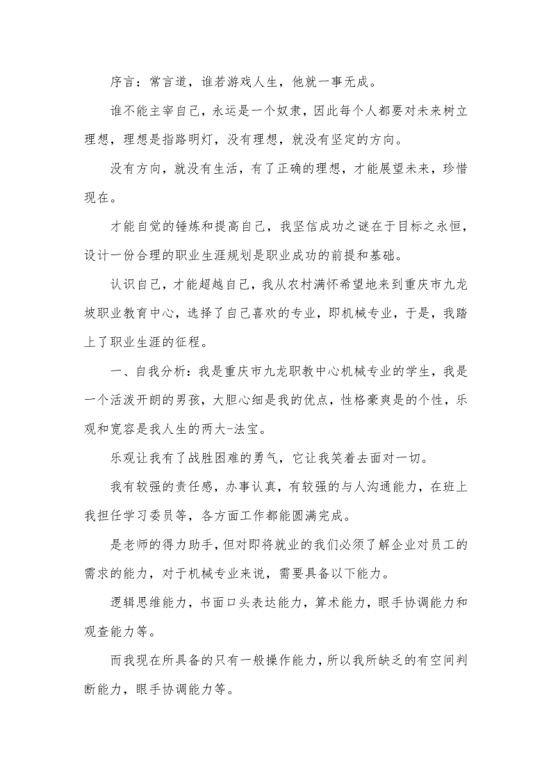 大学生职业生涯规划书数控专业