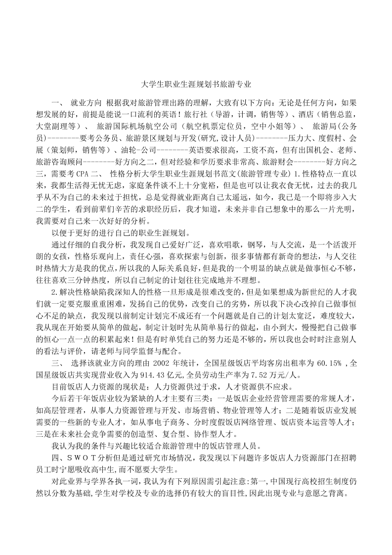 大学生职业生涯规划书旅游专业