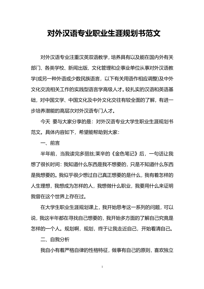 对外汉语专业职业生涯规划书范文