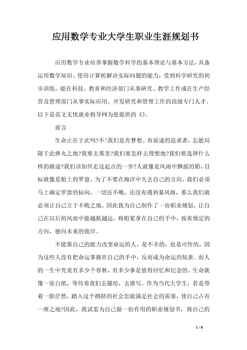 应用数学专业大学生职业生涯规划书