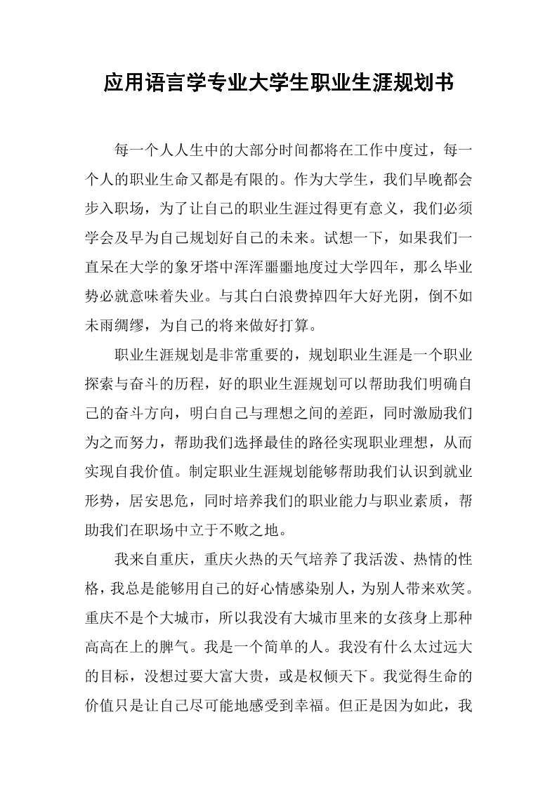 应用语言学专业大学生职业生涯规划书