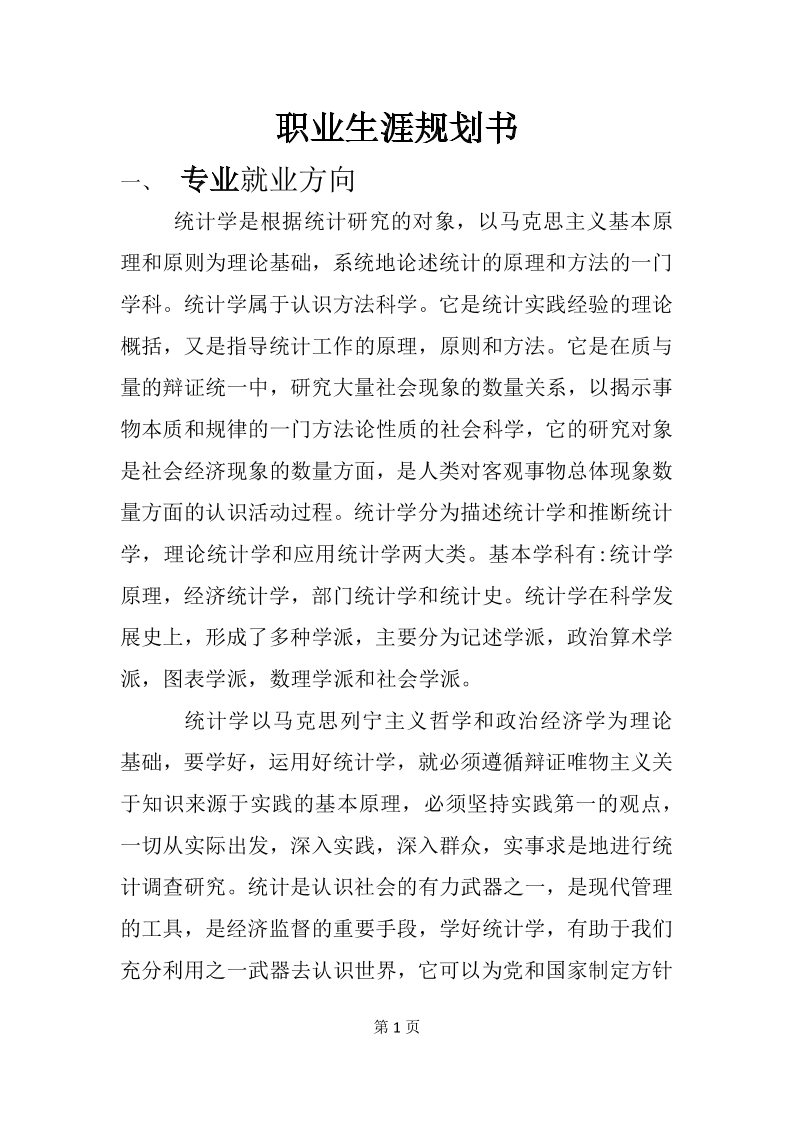 统计学专业职业生涯规划范文