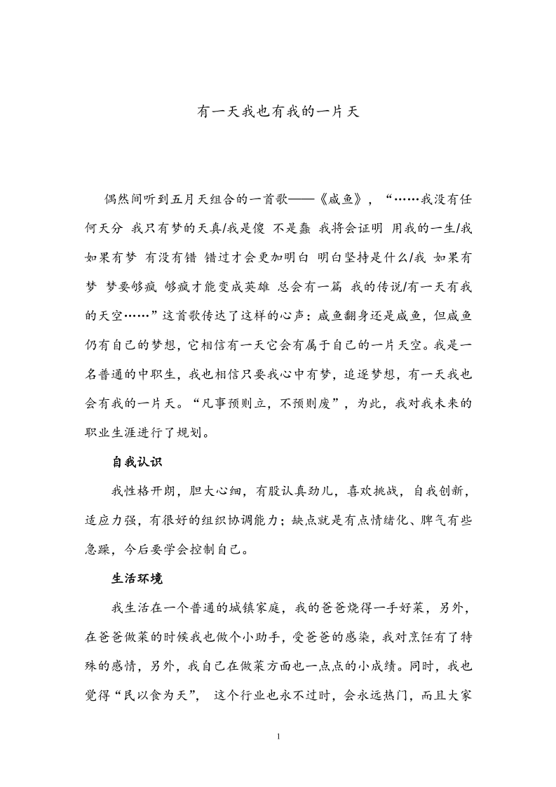 职业生涯规划书-烹饪专业--1