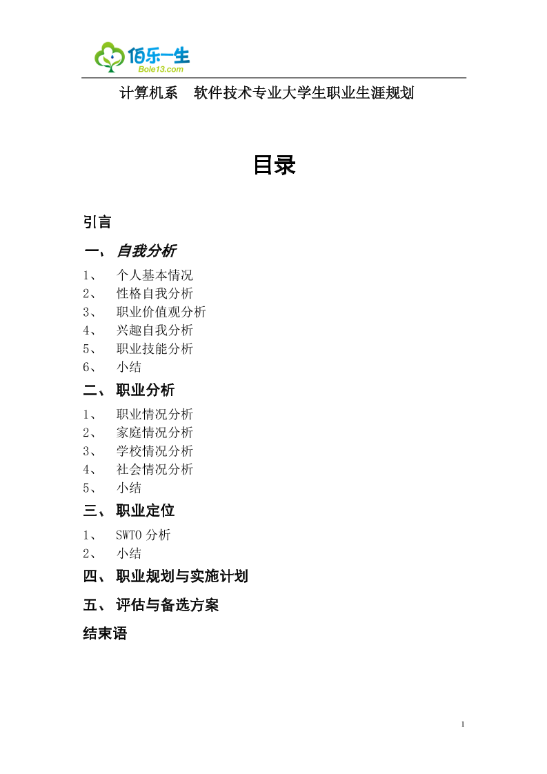 软件技术专业大学生职业生涯规划范文