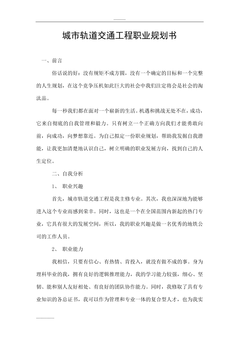城市轨道交通工程职业生涯规划书