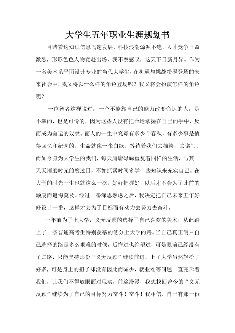 大学生五年职业生涯规划书